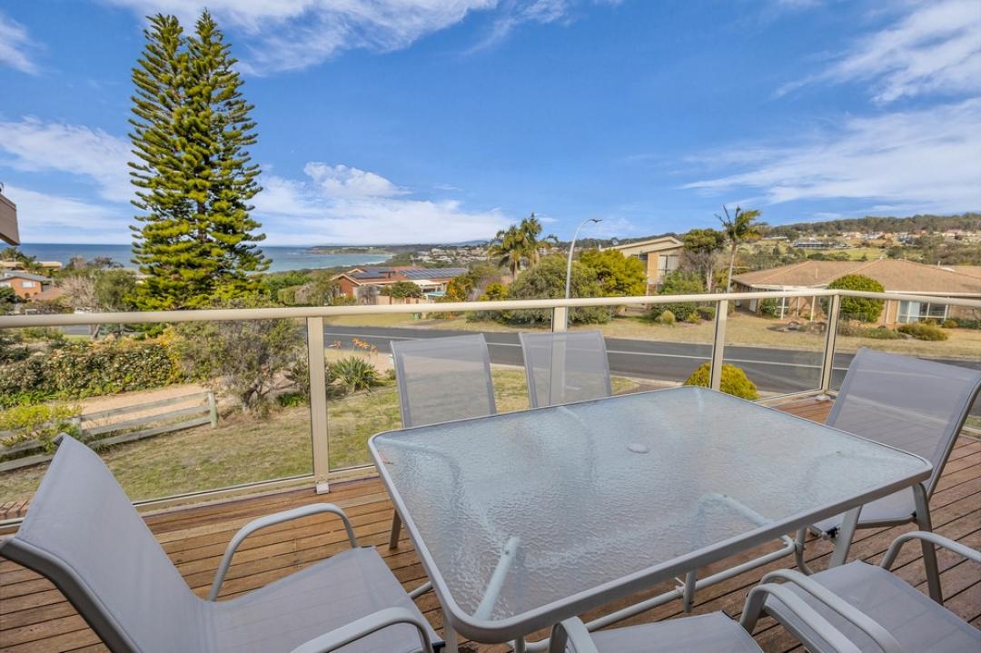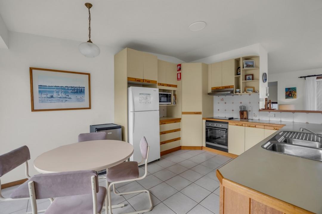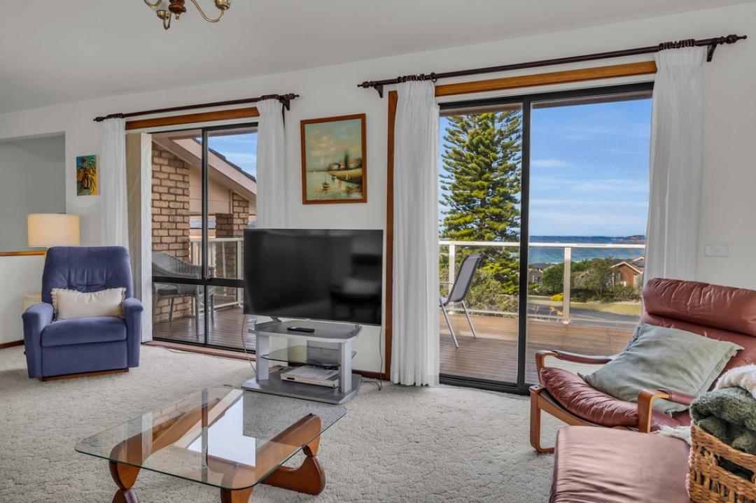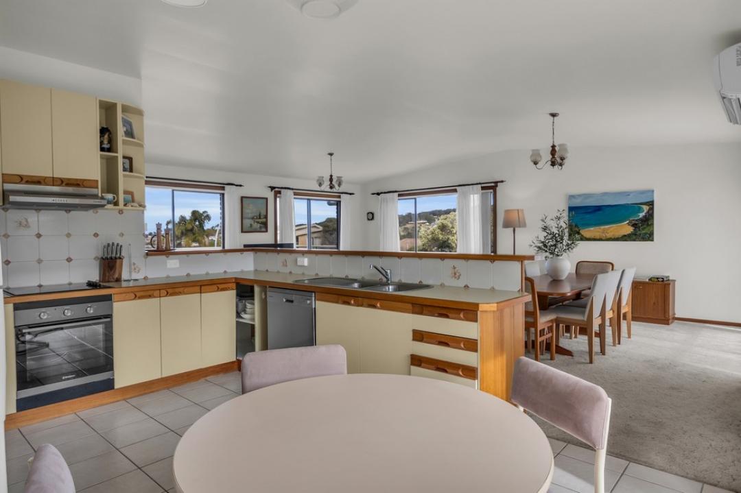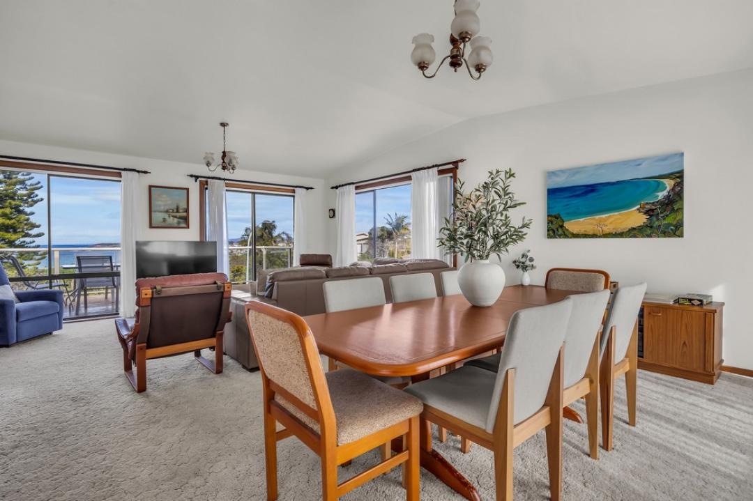 This charming beachside home offers stunning ocean views, a spacious open-plan kitchen and dining area, and a cozy living room perfect for relaxing.