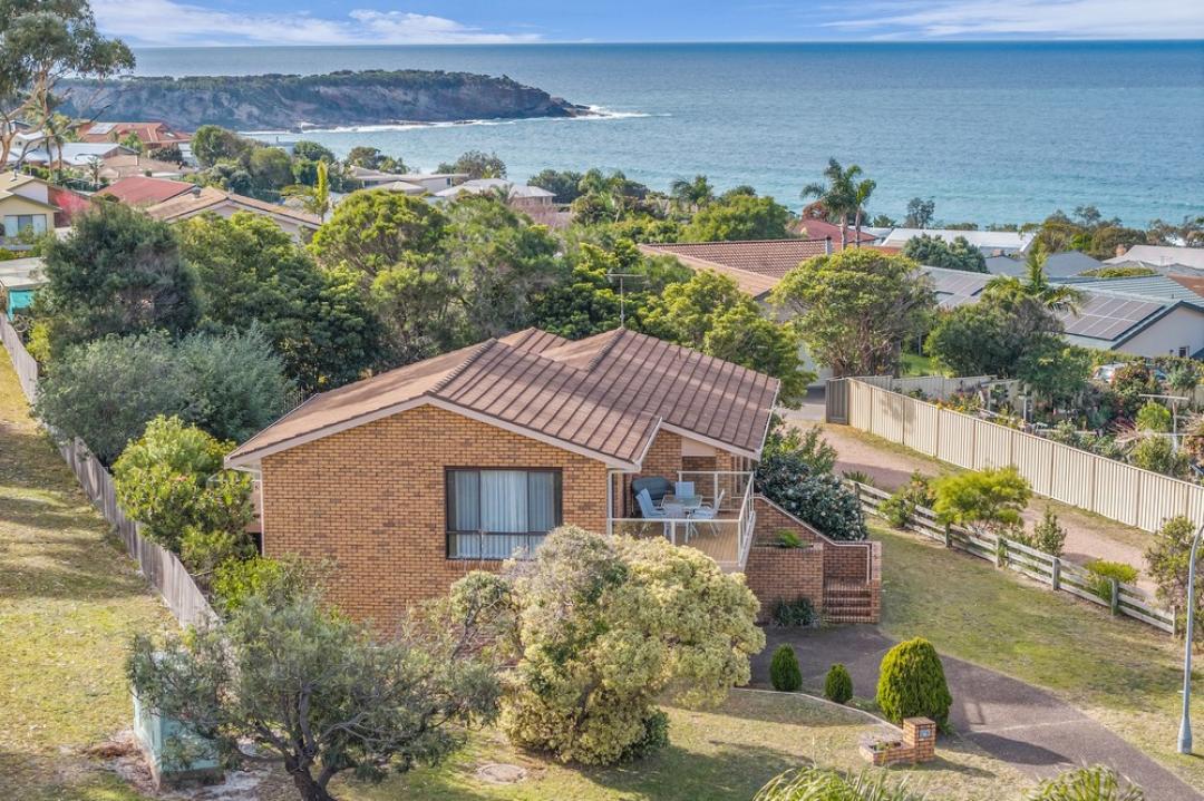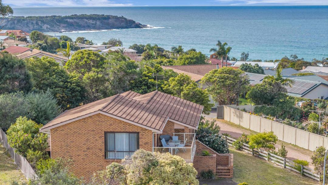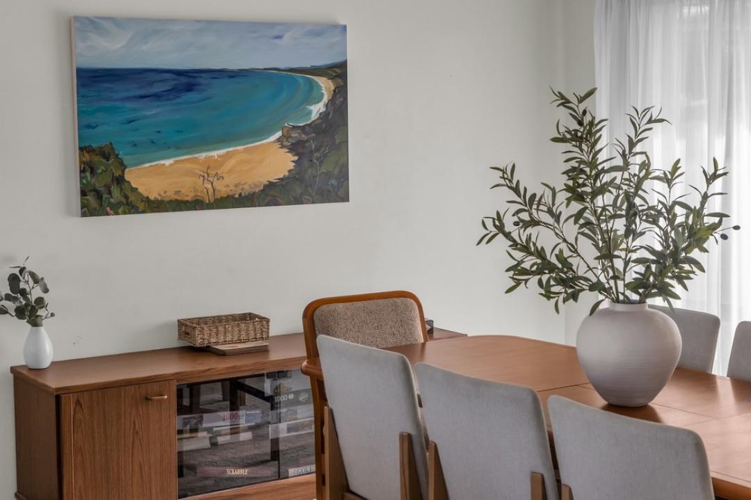 This charming beachside home offers stunning ocean views, a spacious open-plan kitchen and dining area, and a cozy living room perfect for relaxing.